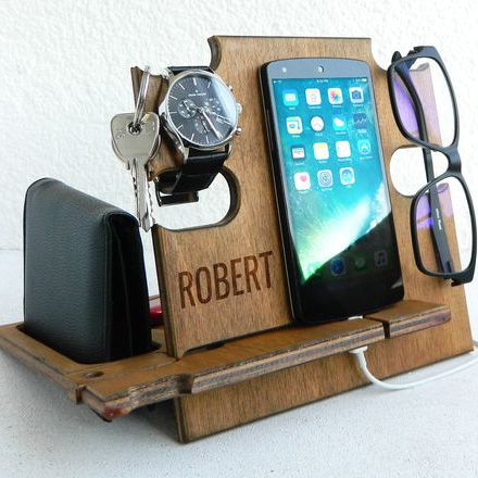 Sản phẩm Đế cắm điện thoại bằng gỗ Đây là một món vật dụng tích hợp nhiều tính năng tiện lợi, phù hợp để ở bàn làm việc việc như: giá giữ điện thoại và các thiết bị công nghệ có kích cỡ nhỏ gọn khi cắm sạc, đồng thời kết nối với các nguồn sạc khác nhau, ngoài ra trên giá gỗ còn những ngăn đựng khác với kích cỡ phù hợp giúp bạn có thể lưu giữ và sắp xếp các vật dụng của mình một cách ngăn nắp như ví, đồng hồ, chìa khóa, kính, bút, giấy note,... Đế cắm bằng gỗ không những được thiết kế với kiểu dáng độc đáo, bắt mắt, hiện tại mà còn phát huy tính đa dụng, tương thích với mọi loại điện thoại di động, điện thoại thông minh, nếu bạn đang xài iPhone thì dù là iPhone XR, XS, XS Max, SE, 7, 8 hay iPhone Plus cho đến các các dòng máy tính bảng, iPad hay các sản phẩm điện thoại của hệ điều hành Android thì cũng không là vấn đề gì. Sản phẩm được sản xuất bằng gỗ hoàn toàn nguyên chất với cấu tạo từ hai miếng ván ép ghép lại với nhau tạo thành hai phần. Phần mặt gỗ dựng đứng có thể in/ khắc thông điệp cá nhân hóa kèm theo công dụng của một chiếc giá đỡ điện thoại, thiết bị công nghệ, mắt kính, đồng hồ, chìa khóa. Phần còn lại được dùng để đựng các vật dụng cá nhânSản phẩm được cá nhân hóa trên 2