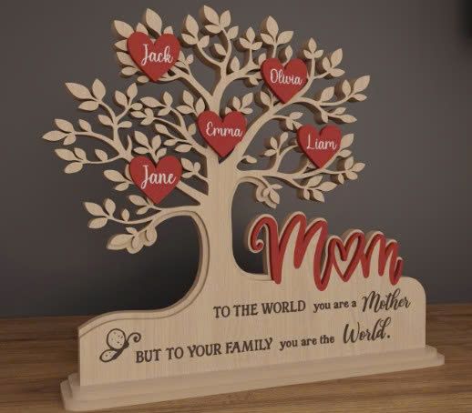 Mô hình cây gia đình, thiết kế kỹ thuật số dạng SVG để cắt laser hoặc thủ công, tượng trưng cho tình yêu và sự gắn bó của các thành viên trong gia đình.