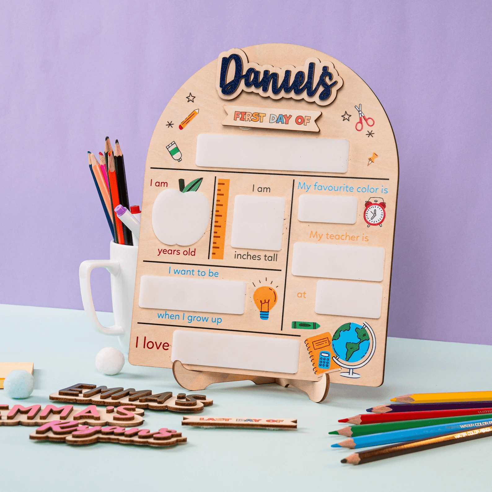 Giới thiệu sản phẩm:Thể hiện sự quan tâm và tình yêu thương đối với những học sinh thân yêu của bạn qua sản phẩm "Custom First Day At School Sign". Bảng gỗ này không chỉ giúp bạn đánh dấu những khoảnh khắc quan trọng như ngày vào lớp 1, tốt nghiệp mầm non, và ngày cuối cùng của năm học, mà còn là một món quà đầy ý nghĩa và kỷ niệm cho các em học sinh.