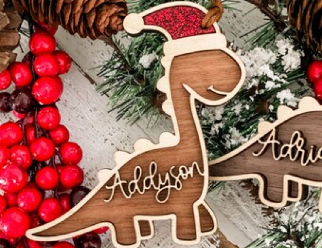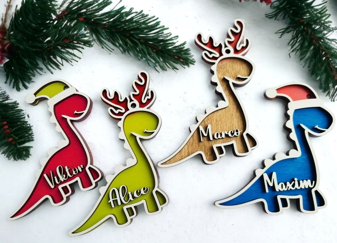 Sản phẩm Đồ trang trí Giáng sinh khủng long (Dinosaur Christmas Ornament) Một món đồ trang trí độc đáo, với thiết kế khác biệt và cá tính, kèm với thông điệp cá nhân hóa được gửi gắm trong mùa Giáng sinh. Tất cả đều được thiết kế hài hoà tạo nên một sản phẩm đẹp mắt và để lại nhiều ấn tượng khiến người nhận không thể quên được. Sản phẩm được sản xuất bằng những tấm gỗ hoàn toàn nguyên chất, thuần tự nhiên, chất lượng cao và không sử dụng hoá chất độc hại và keo độc tính gây ảnh hưởng đến sức khoẻ của người dùng.Mặt phía trước của đồ trang trí sẽ được cá nhân hoá theo yêu cầu của người dùng với thông điệp và màu sắc theo yêu cầu.
