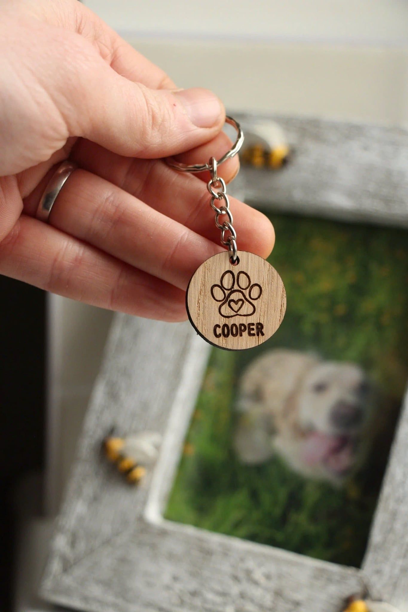 Hãy tặng "Personalised Paw Print Keyring" – một chiếc móc khóa thủ công tuyệt đẹp dành riêng cho những người yêu chó, mèo. Với hình dáng tròn và dấu chân thú cưng được khắc tinh tế cùng tên của chúng, sản phẩm này không chỉ là một món quà tưởng nhớ đầy xúc động mà còn là phụ kiện độc đáo cho người yêu thú cưng.