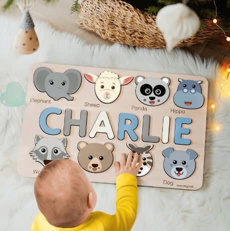 Trò chơi ghép tên bằng gỗ được cá nhân hóa theo tên riêng của bé. Vừa học chữ vừa tăng khả năng nhận diện ngôn ngữ ban đầu.